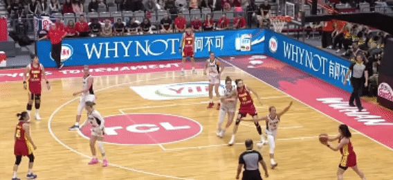 來到第三節,中國隊再變戰術,2大3小的組合:韓旭、李月汝在內線,張曼曼、楊舒予、王思雨在外線。宮魯鳴連續變招,盡可能追分:王思雨突破後給到李月汝,中國女籃艱難追分。