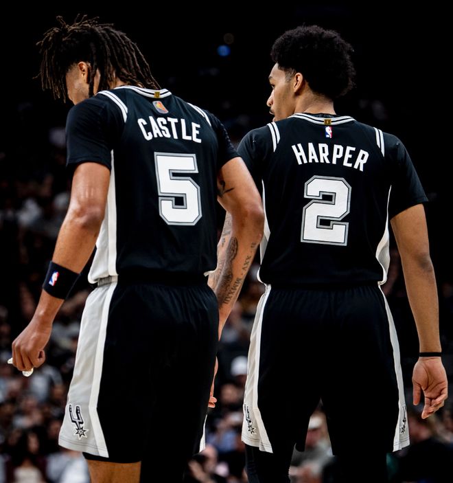 掘金的防守是真不行,馬刺人人奮勇無不當先,福克斯、卡斯爾、瓦塞爾、哈珀、巴恩斯、卡布是連番拿分,掘金開場隻能依靠約基奇10中4拿到12分4籃板苦撐,約基奇連續傳球隊友都打鐵,穆雷首節3中0很鐵。