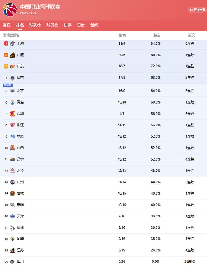 - 隨著北京3連勝,上海大勝50分,CBA最新積分榜出爐!廣廈第2