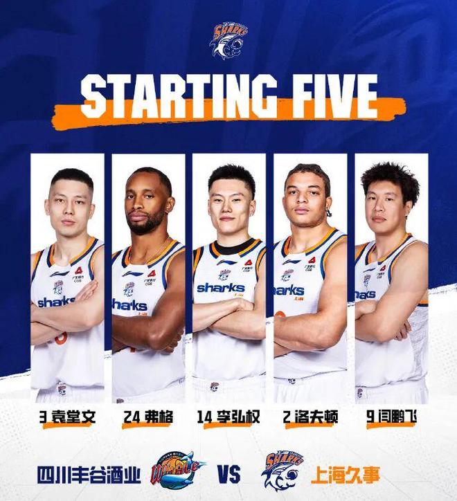 今晚上海男籃迎來CBA常規賽第25輪的比賽,客場挑戰副班長四川男籃,後者本賽季一勝難求。此役,大鯊魚先發五人為:袁堂文、弗格、李弘權、洛夫頓以及閆鵬飛。