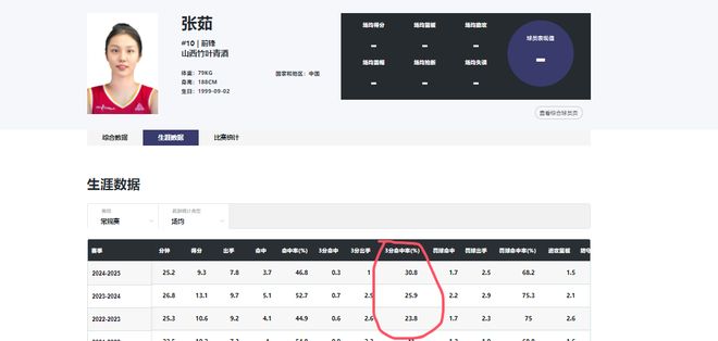 三場比賽,張茹共出戰兩場,累計出手7次隻命中1球,場均得分數僅為1.5分,且在比賽中多次出現空位不出手的情況。