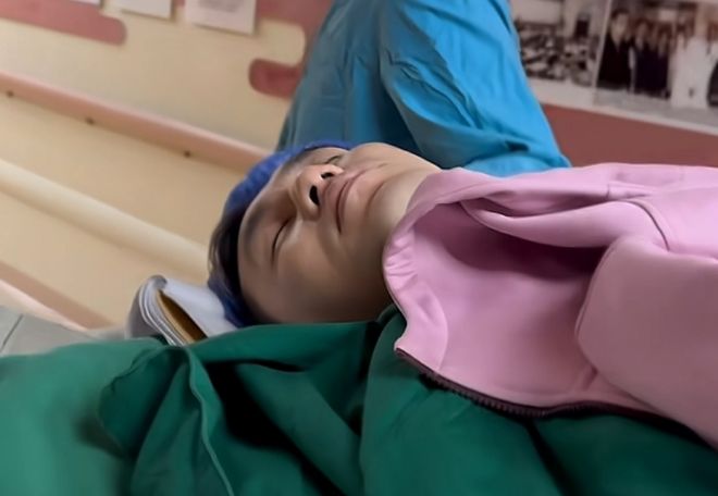郭艾倫曬出自己做手術的視頻,以及曬出在病床上完成手術的照片,還比了一個V的手勢。