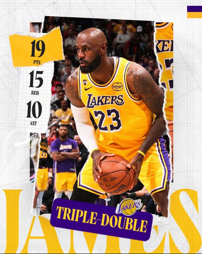 41歲的勒布朗雖然隻是贏球的第二功臣,可他全場比賽僅12次出手命中8個拿到19分15籃板10助攻,命中率高達66.7%,詹姆斯以41歲的高齡再度拿到了三雙。