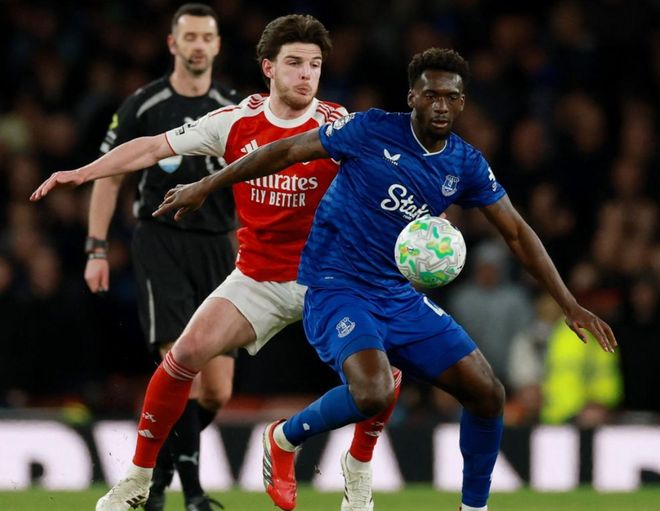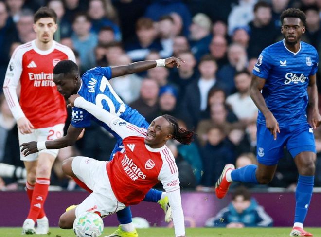 英超第30輪迎來一場比賽,阿森納在主場迎戰埃弗頓。阿森納前30場聯賽取得20勝7平3負的戰績,力壓曼城,排名榜首。近3場聯賽阿森納都贏了,相繼擊敗了熱刺、切爾西和布萊頓。在周中,阿森納踢了一場歐冠淘汰賽,結果在客場艱難戰平勒沃庫森。如今回歸聯賽,阿森納麵對的是聯賽排名第8的埃弗頓。結果,阿森納最後時刻爆發,連進2球,擊敗埃弗頓。