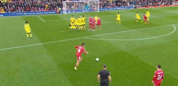 第18分鍾,麥卡利斯特被犯規,利物浦獲得前場定位球機會。索博斯洛伊再次施展百步穿楊絕技,圓月彎刀直奔死角,維卡裏奧撲了一下依舊入網,利物浦打破僵局,1-0!