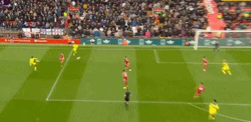第36分鍾,理查利森後場帶球,索博斯洛伊巧妙將球斷下,麥卡利斯特做球,加克波勁射直奔左下角,維卡裏奧撲了一下,皮球擊中立柱彈出,利物浦差點再下一城。