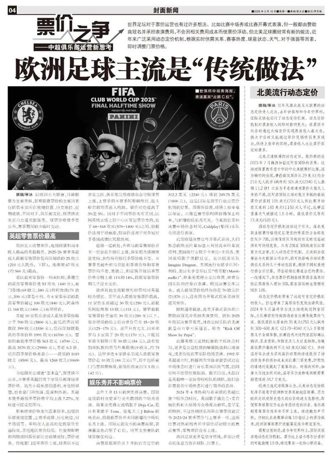撰稿/寒冰以歐洲五大聯賽、日韓聯賽為主要參照,影響聯賽票價的主要因素包括俱樂部所在地理位置、曆史地位、近期成績、不同對手、俱樂部文化、球票供求關係乃至通貨膨脹等。世界足壇對於票價運營也有過許多想法。比如比賽中場秀或比賽開幕式表演,但一般都由讚助商冠名並承擔表演費用,不會因相關費用成本而使票價浮動。但北美足球圈經常有新的做法,近年來廣泛采用動態定價機製,根據實時供需關係、賽事熱度、球星狀態、天氣、對手強弱等因素,即時調整門票價格。